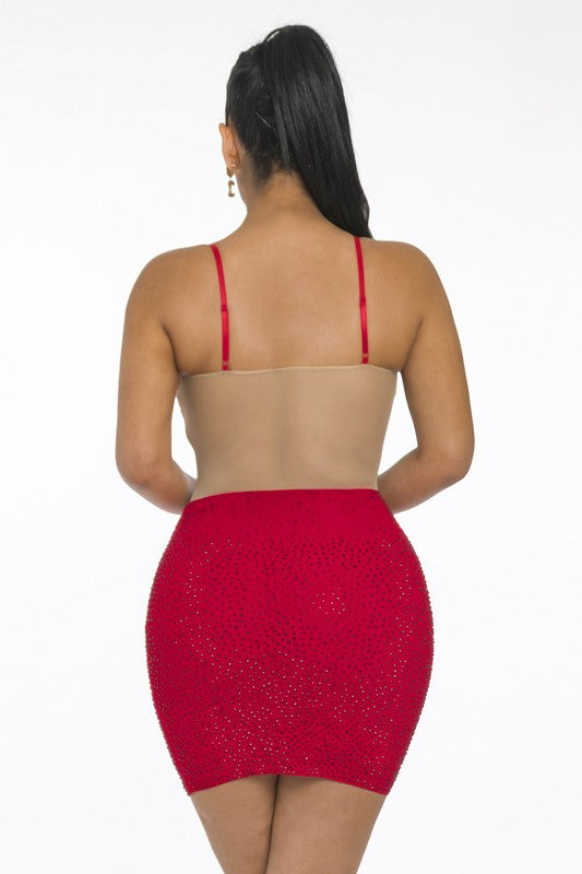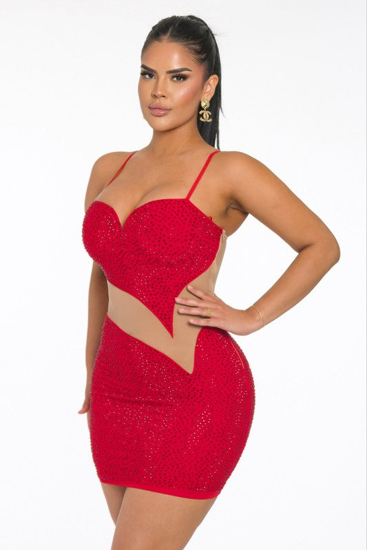 RHINESTONE HEART SHAPED BODYCON MINI DRESS