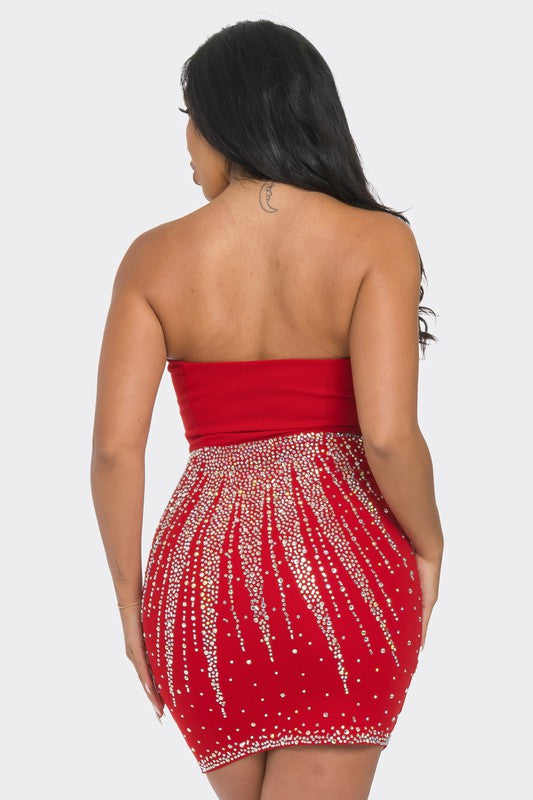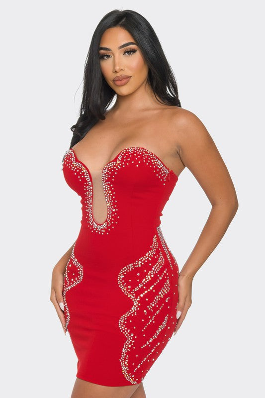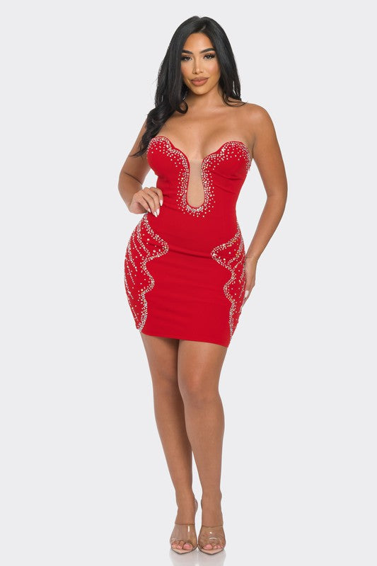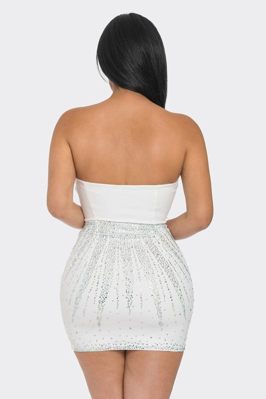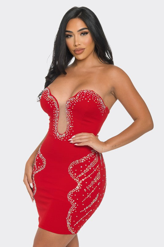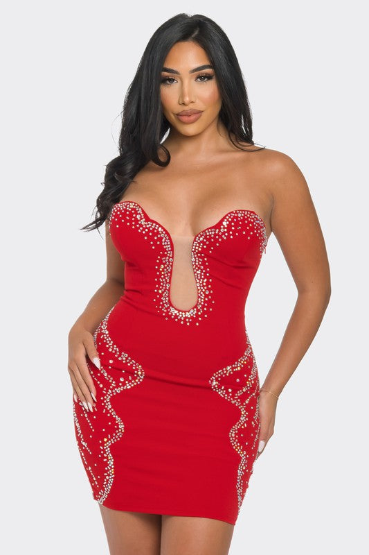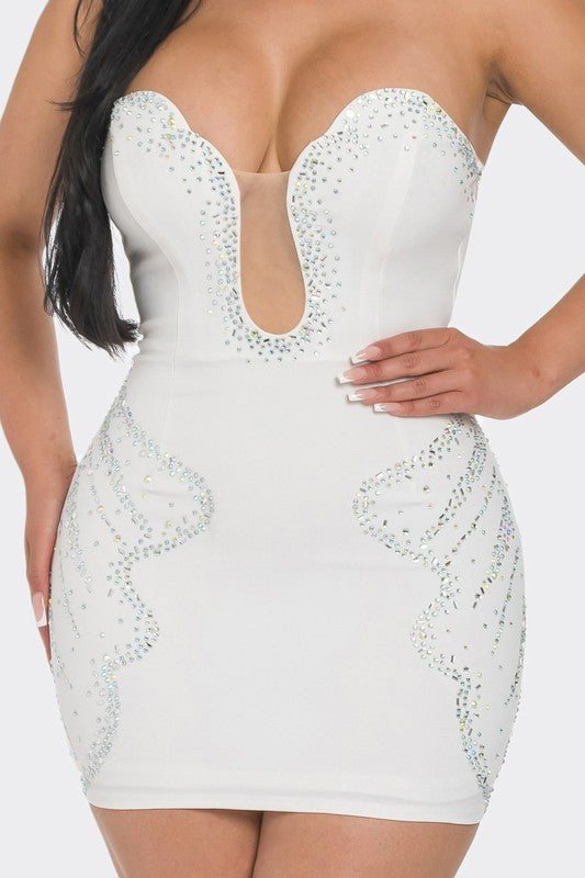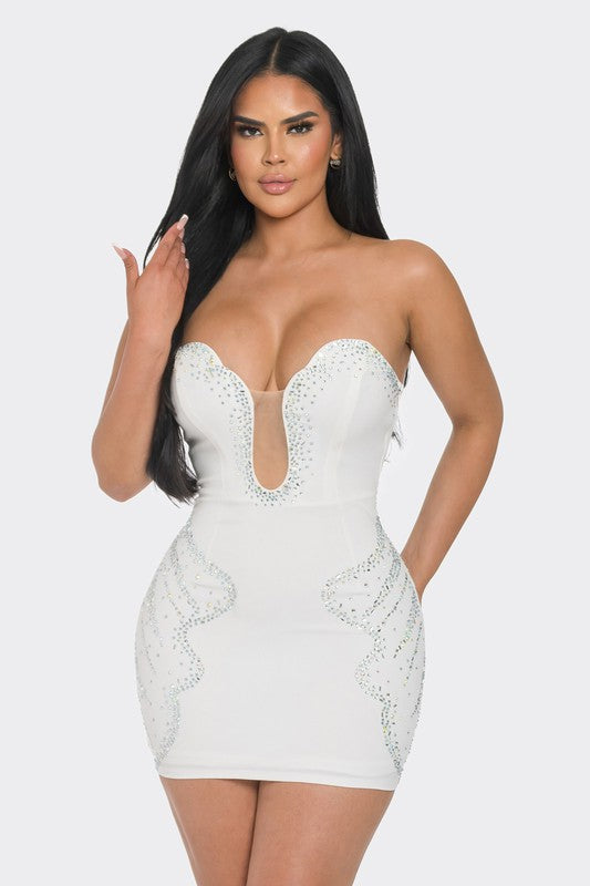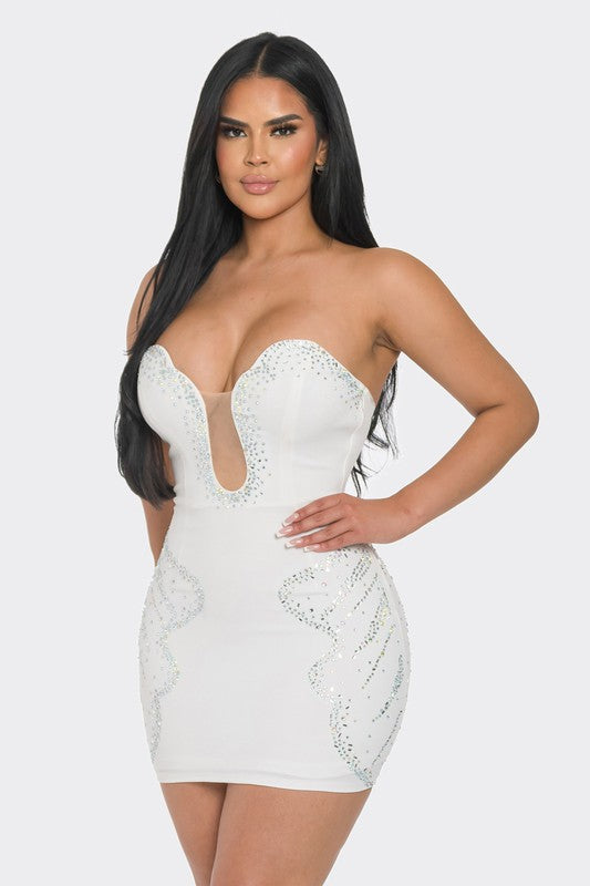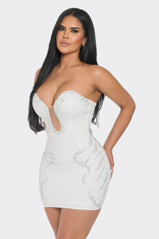 Rhinestone Off Shoulder Mini Dress, Open backless