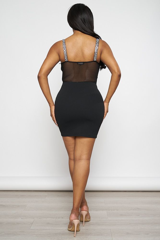 Rhinestone Contrast Fishnet Mini Dress